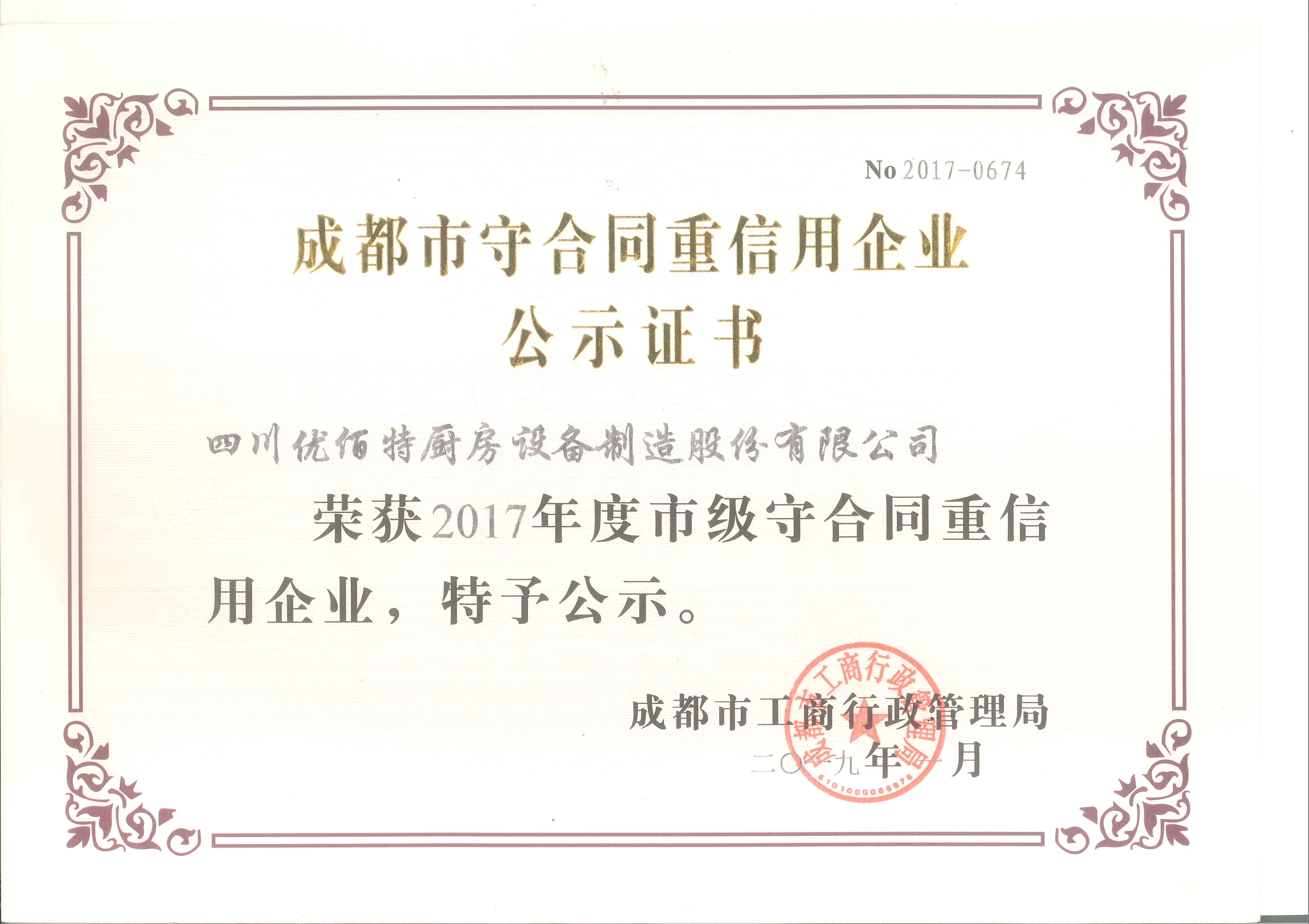 热烈庆祝我公司荣获成都市守合同重信用荣誉证书
