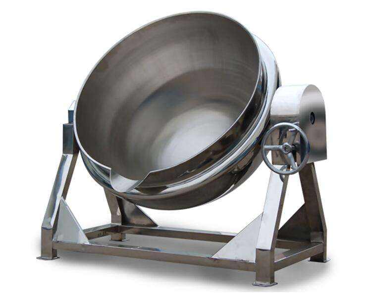 夹层锅,又称为蒸汽汤国,它采用装汽为热源,由内外双层球形锅体组成,内外夹层中间通入蒸汽加热,蒸汽温度为150-180度,压力小于0.2MPa,传热效率高,不会煳锅。常用的夹层锅为可倾式,锅身可覆,以方便装卸物料,倾锅装置通过手轮带动齿轮传动,使锅体倾斜出料。翻转动作有电动控制的,整个操作过程安全且省力。夹层锅适用于酒店、宾馆、食堂及快餐行业,常用于布郎础汤的熬制、肉类热汤的预煮、配制调味液以及熬煮一些粥和面食类食品。