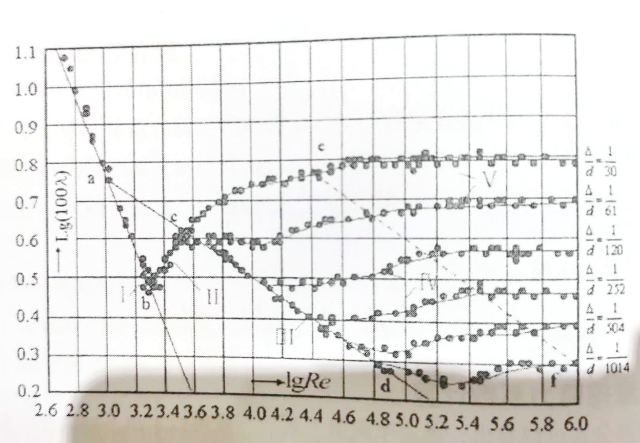 该区摩擦阻力系数可用尼古拉兹经验公式计算。