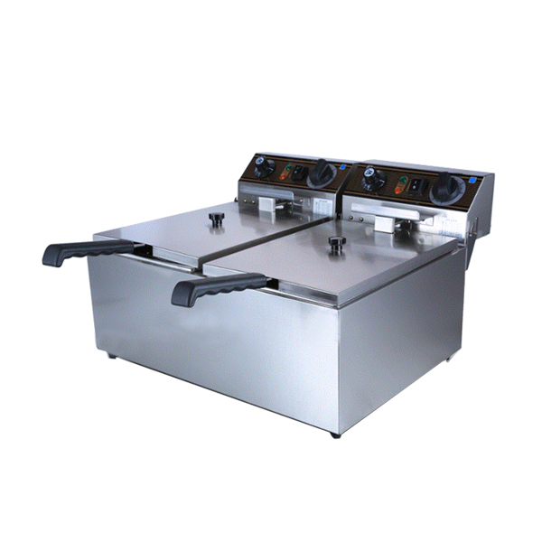 在这里,顺便介绍一下燃气双缸炸炉。燃气双缸炸炉与电力双缸炸炉结构基本相同,不同之处是燃气双缸炸炉是使用脉冲点火,带有熄火保护安全装置,操作方便。燃气炸炉主要使用燃气管发热,可以快速的升温到所需要的温度,高效率、高效能。