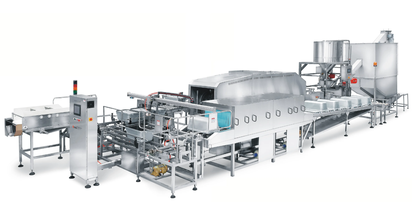 又例如:蔬菜的处理,如果每日总的需求量已接近1吨,集中的清洗和切配费效已超过分散到门店加工。自动或手动的蔬菜清洗机清洗后人工或机器切配,然后真空或气调包装冷藏配送成为必然的选择。采用这样的生产模式需要增加生产线,必须考虑到与其他原有的生产线的配合;前处理区域、加工区、高温加工区、冷却间、包装车间等的设计都要充分考虑,肉类、蔬菜、水产、等各生产线的功能区集中和生产线划分必须考虑周到。