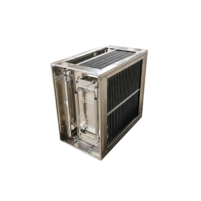 3、再次,将油烟净化器电场安装回去也是需要将油烟净化器电场电极板正负极电极板之间是不能连接的,必须检查确保极板之间没有杂链接短路物,防止短路。