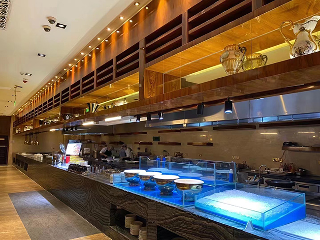 使用设备有:五格热汤池柜(菜品保温)、保温暖汤车(汤、粥、米饭保温)、单开调理柜(餐具存储),单星水池、混水龙头等。
