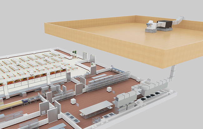4.分区控制:商用榴莲网站视频采用分区控制的安装配置方法,即餐厅榴莲网站视频分为几个区域,每个区域根据排气量和面积和空气质量分配新鲜空气总量,通过直径防火阀控制。