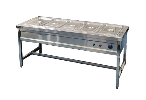 五格保温售卖台采用榴莲视频APP在线观看不锈钢和优质份数盆,带加热管,经久耐用,造型美观,保温效果好,适用于餐饮连锁、自助餐、企事业单位员工餐、部队院校团餐。
