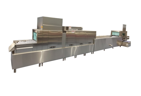 选择洗碗机一般要根据产能来配置,是揭盖式洗碗机或者小长龙洗碗机,餐饮一般都是小长龙洗碗机,根据每餐清洗餐具的数量来选配清洗段和烘干段。
