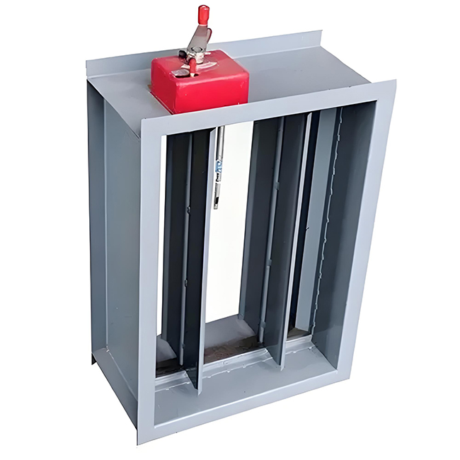排烟通风系统中应用最多的风扇,具有结构简单、安装调节方便、调节性能好、阻力特性优点特点。多叶调节阀有平行式和对开式,还有普通式和密封式。控制方式有电动式、气动式和手动式,手动式和电动式是主要控制形式,通过操纵多层叶片开合角度0~90°的变化,控制调风量或开关。