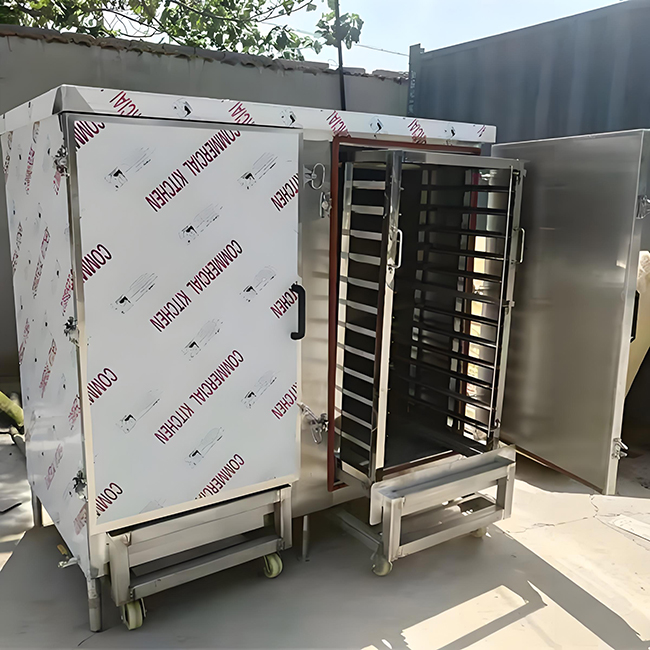 陕西榴莲网站视频设备厂家告诉你隧道式大型推车蒸柜的特点
