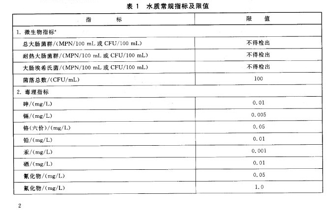 农村小型集中式供水和分散式供水的水质因条件限制,部分指标可暂按照表4执行,其余指标仍按表1、表2和表3执行。