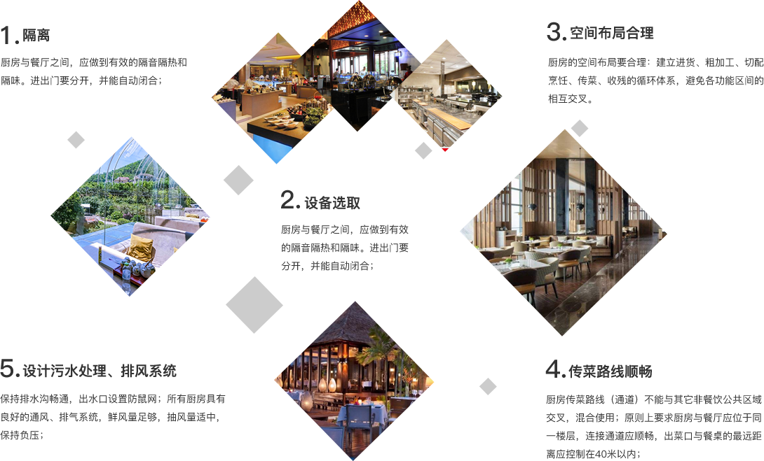 酒店榴莲网站视频应具备加工间、制作间、备餐间、库房、洗碗消毒间、厨师长办公室及厨工服务用房等。 榴莲视频APP在线观看对布局、路线、分区、排水等方面均按照国家相关法律法规进行设计,考虑到餐饮的生产, 从原材料的采购、收货、入库、存储、保管到出库、粗加工、切配、烹饪、装盘出品等多方面进 行设计。应关注以下几个方面:根据生产、出品的次序布局; 避免进、出榴莲网站视频的物流产生交叉与 回流;避免人流与物流的交叉及员工流与客流的交叉;尽量缩短员工制作菜肴的行走路线;注意 洁、污,生、熟的分区;榴莲网站视频的所有排水须经过隔油池隔除油污后方可排放出。